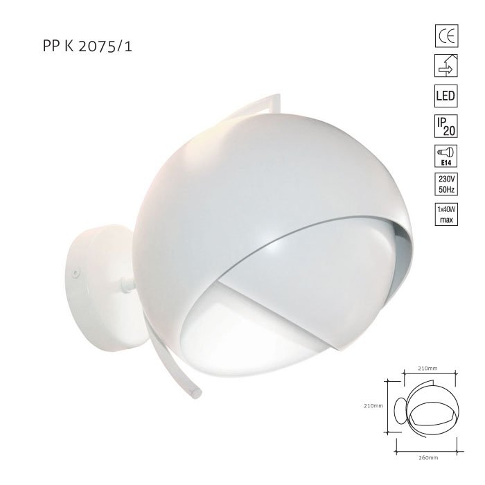 Kinkiet LM K 2075/1 wyróżnia się doskonałą jakością wykonania. Obudowę wykonano z lakierowanego na biały kolor metalu, a źródło światła stanowi energooszczędna lampa LED.