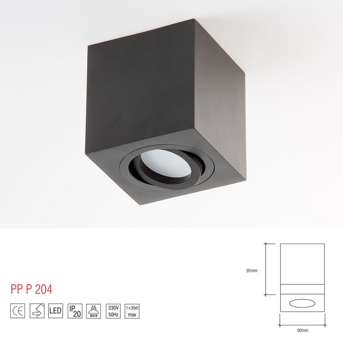 W naszej ofercie znajduje się szeroka gama źródeł światła z serii LM P 204 BK. Prezentowany plafon dostępny jest również w formie okrągłej oraz kwadratowej. Firma PP Design, która jest producentem tego natynkowego plafonu, stworzyła tego rodzaju oświetlenie także w kolorze białym, czarnym oraz czarno-białym. Warto też wspomnieć, że lampie dedykowane są żarówki LED, dzięki którym za generowane światło nie ponosi się wysokich kosztów.