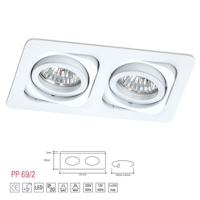 Oprawa halogenowa LM 69/2 to wysokiej jakości produkt, który został wykonany z aluminium lakierowanego na kolor biały, dzięki czemu idealnie pasuje do podwieszanych stropów, sufitów, czy na zewnątrz do podbitki dachowej. Oprawa dostępna jest w wersji pojedynczej, jak i podwójnej.