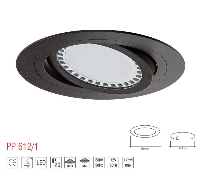 Okrągła oprawa halogenowa LM 612/1 to wysokiej jakości produkt, który został wykonany z aluminium lakierowanego na kolor czarny, dzięki czemu idealnie pasuje do podwieszanych stropów, sufitów, czy na zewnątrz do podbitki dachowej.