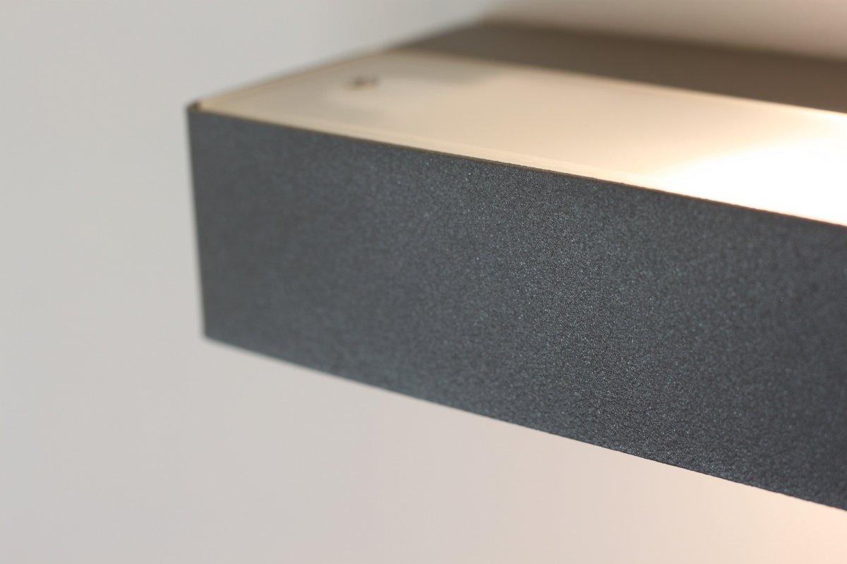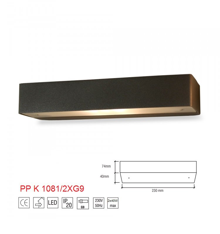 Kinkiet LM K 1081/2XG9 jest wykonany z metalu lakierowanego na kolor szary, przy zastosowaniu wysokiej dbałości o każdy szczegół. Dostępny jest w różnych długościach: 12, 23, 60, 90 i 120 cm oraz w 4 kolorach: chrom, biały, czarny i szary.