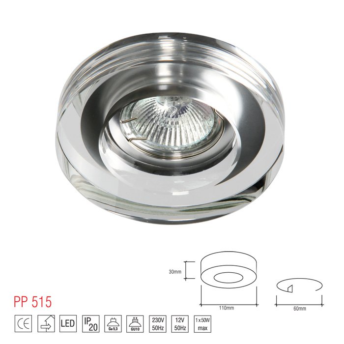 Oprawa halogenowa LM 515 doskonale pasuje zarówno do mieszkalnych wnętrz, jak i komercyjnych lokali. Dostępna jest w wersji przezroczystej, o wysokości 2,5 cm, 3 cm, z chromowaną nakładką oraz w wersji matowej. Do oprawy pasują żarówki typu MR16 i PAR16.