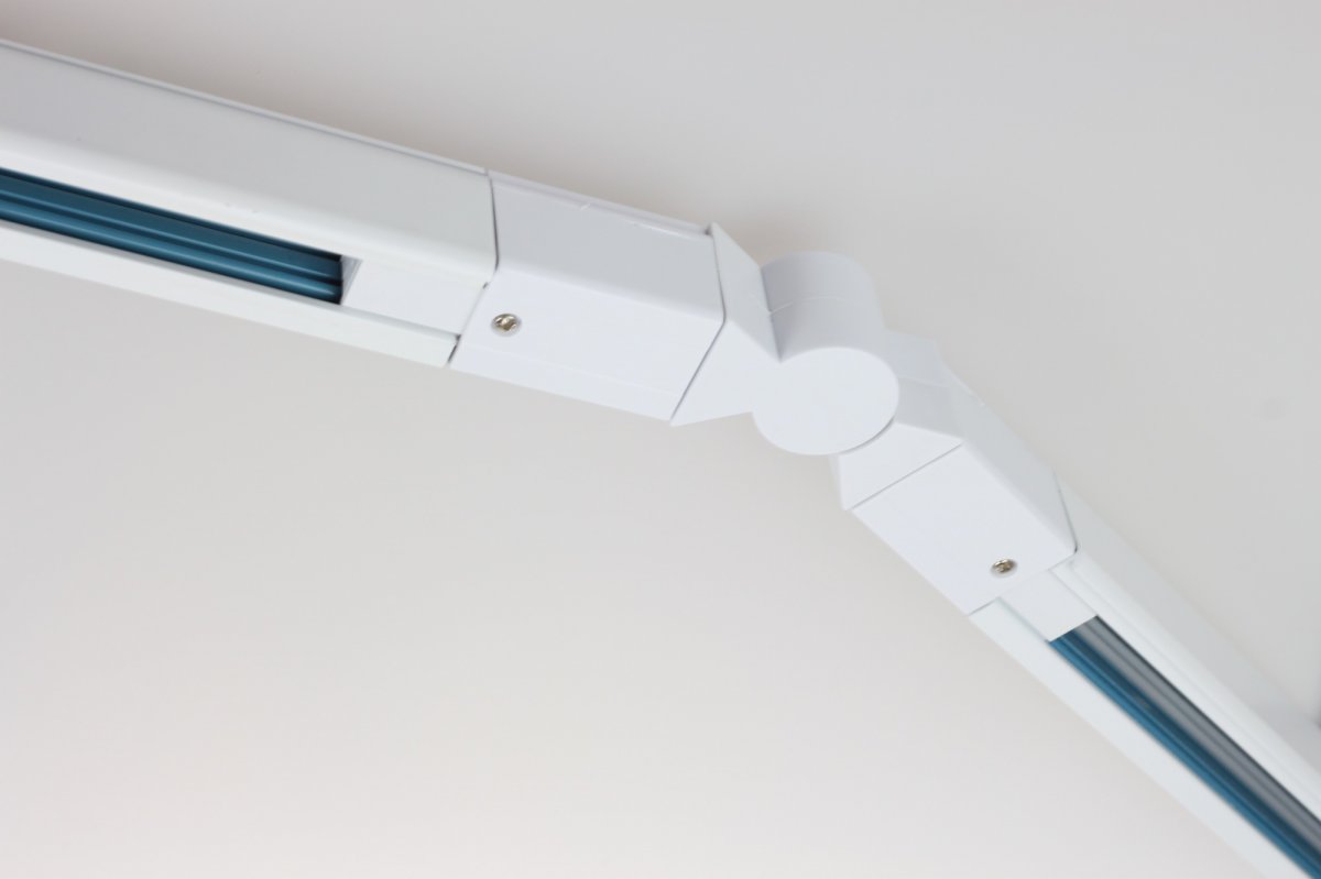 Łącznik łamany regulowany w kolorze białym do szynoprzewodu trójfazowego.
