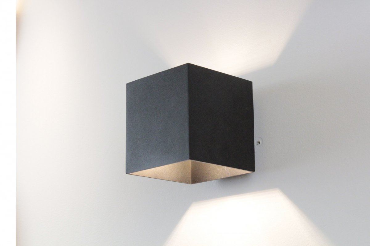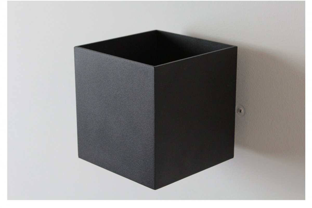 Kinkiet - kubik wykonany z aluminium. Punktowe światło dekoracyjnie świecące w górę i w dół.